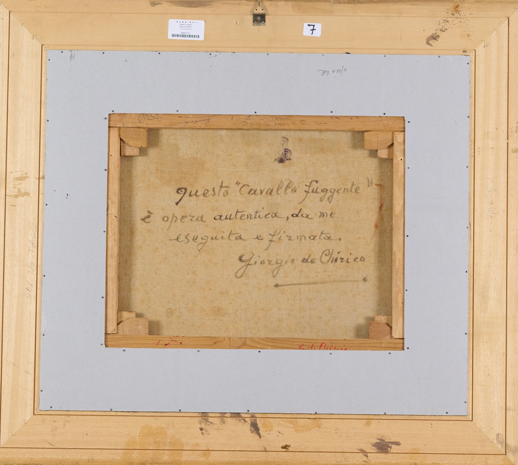 Autentica della fondazione "Giorgio e Isa De Chirico" con archivio N.017/05/19 OT datata 28 Maggio 2019, con timbro a secco dell'Artista e firma del presidente Prof. Paolo Picozza.