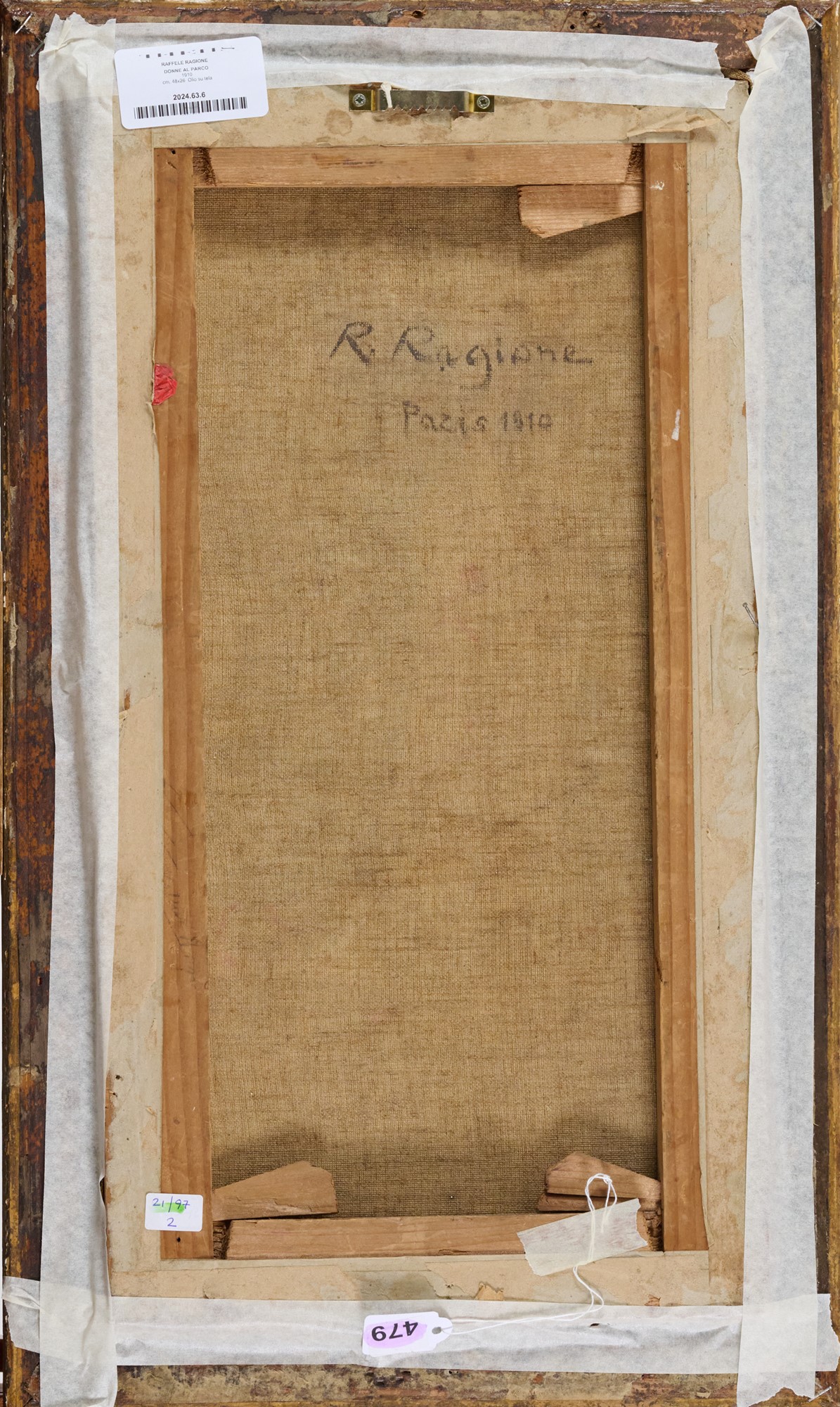 Raffele Ragione (1851) Donne al parco, 1910 Olio su tela cm. 48x26 Firmato in...