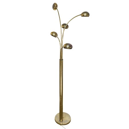 Piantana con struttura in metallo dorato a 5 luci, 70's