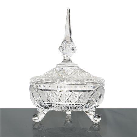Biscottiera in cristallo di bohemia lavorato ad acido e fresa