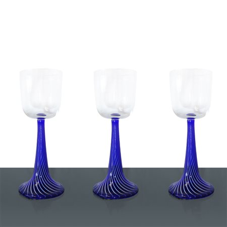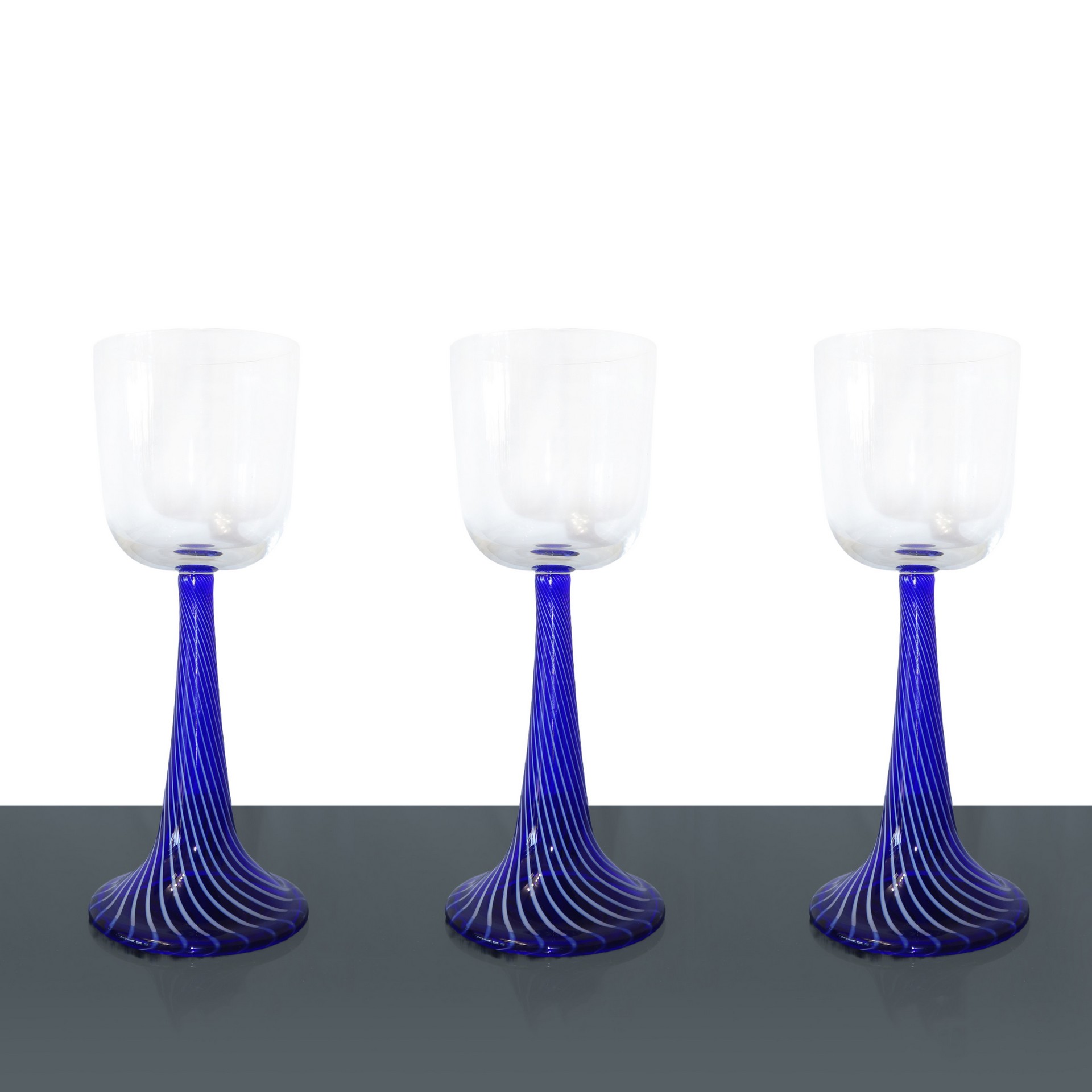 Saint Louis - Tre centrotavola Filigranè blu e bianco. H cm 31,5x13.