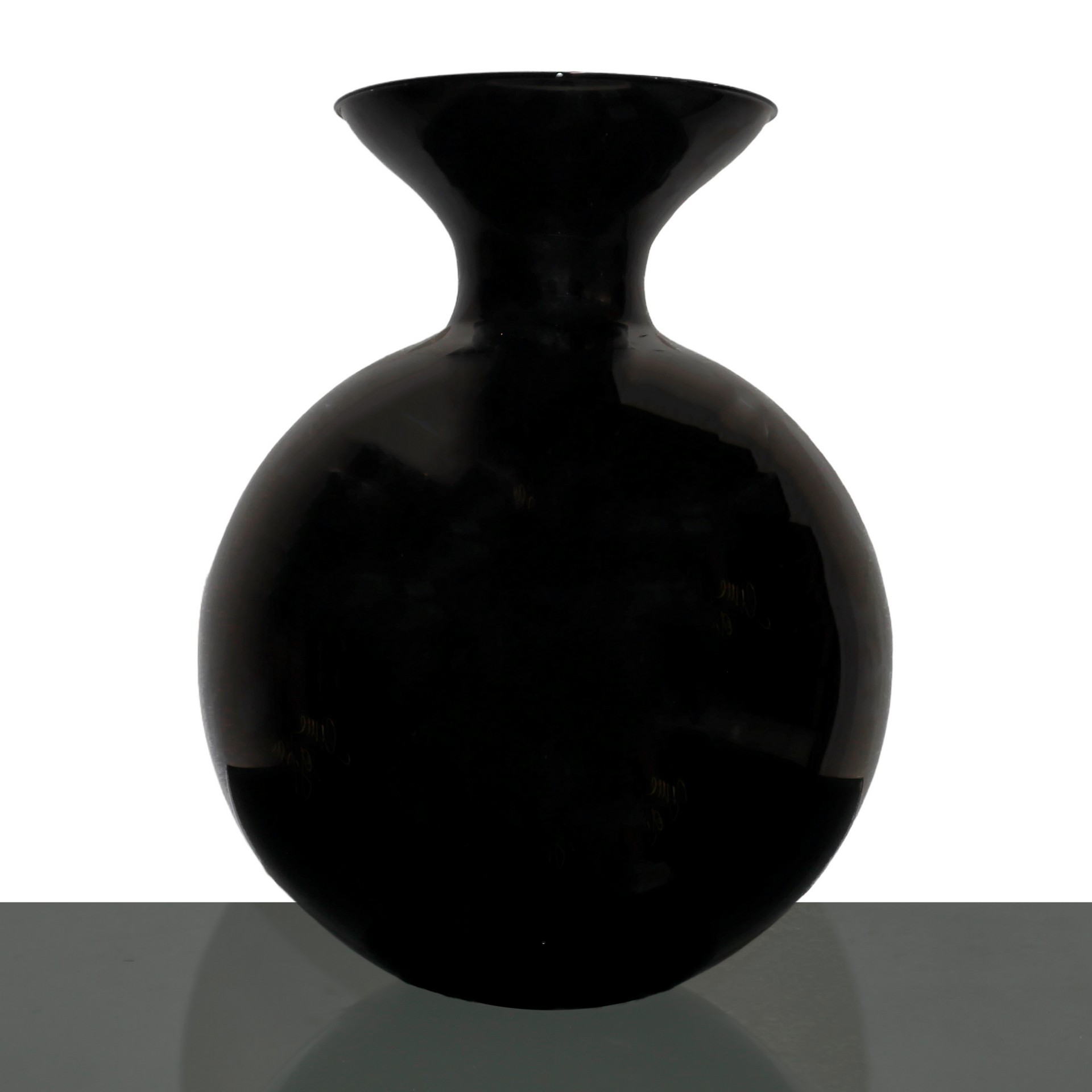 Vaso in porcellana nera con decorazioni floreali dorate cm 31x28