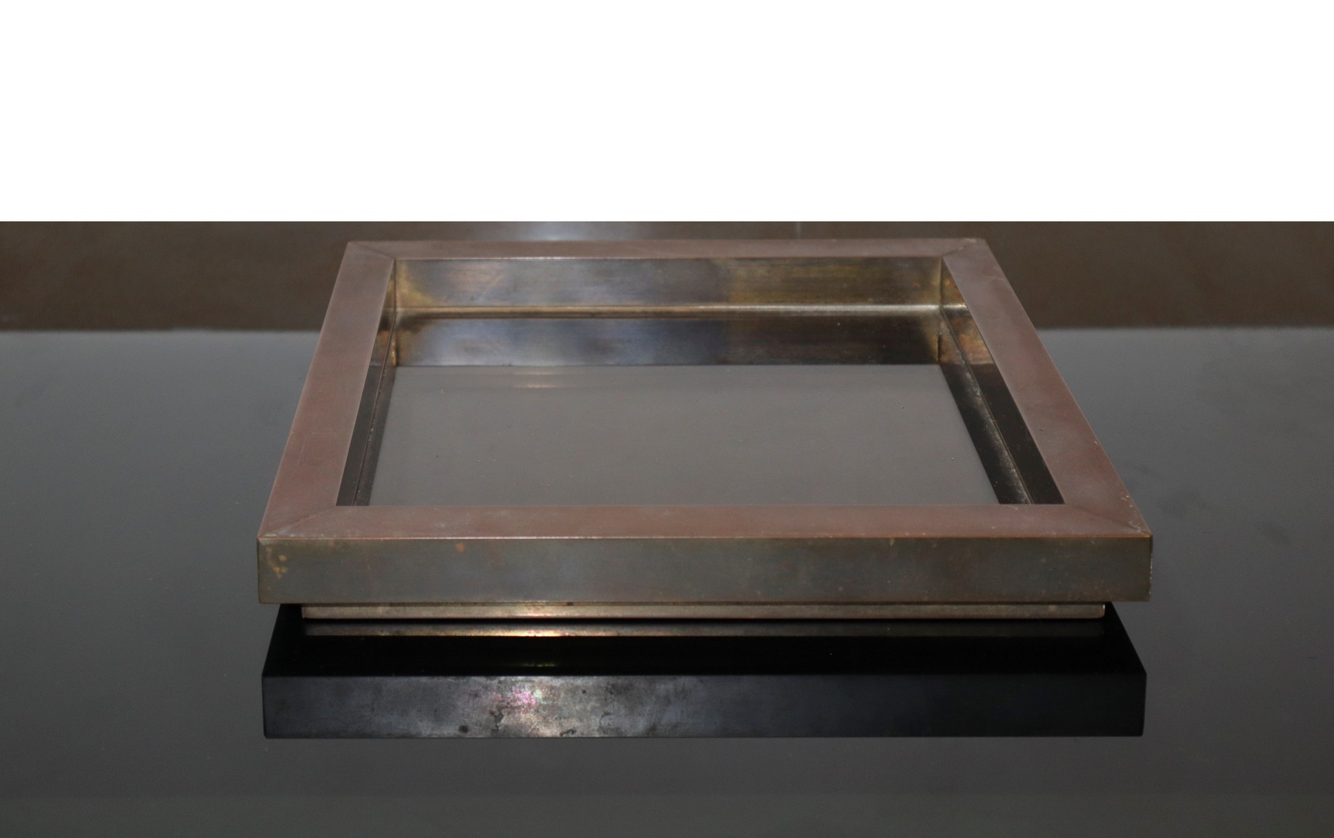 Romeo Rega - Posacenere con struttura in ottone e vetro trasparente, 60's cm 25 x cm 25 Nei toni de