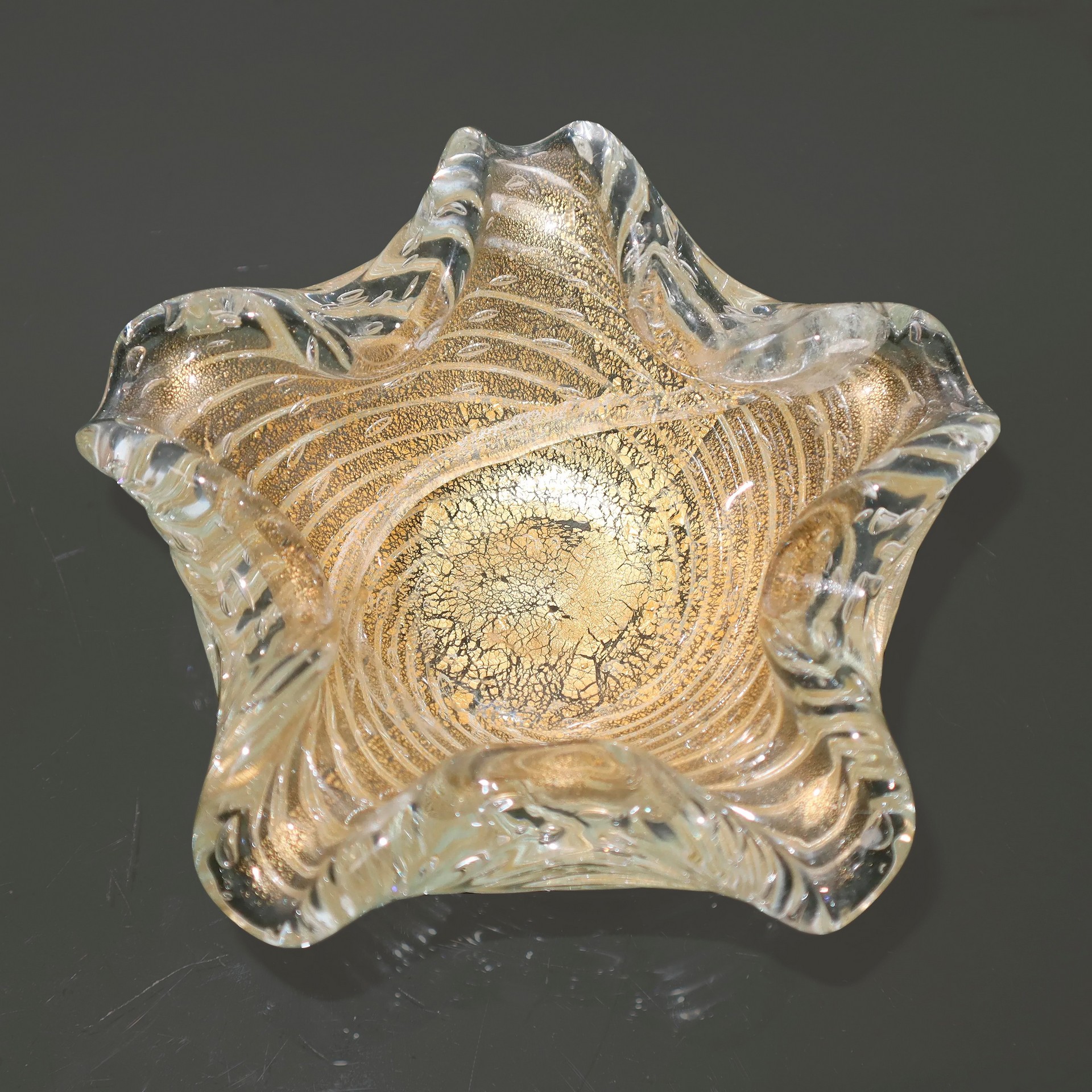 Barovier e Toso - Coppia di stelle in vetro di Murano pulegoso con iridescenze nei toni dell'oro Di