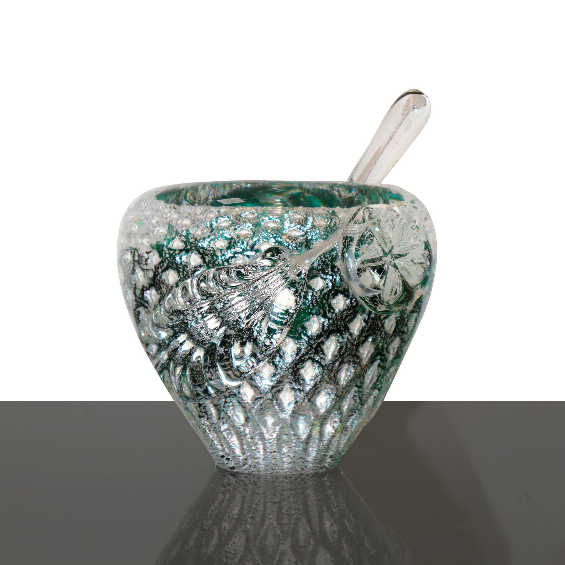 Barovier e Toso - Posacenere con pestello con iridescenze nei toni del verde e dell'argento