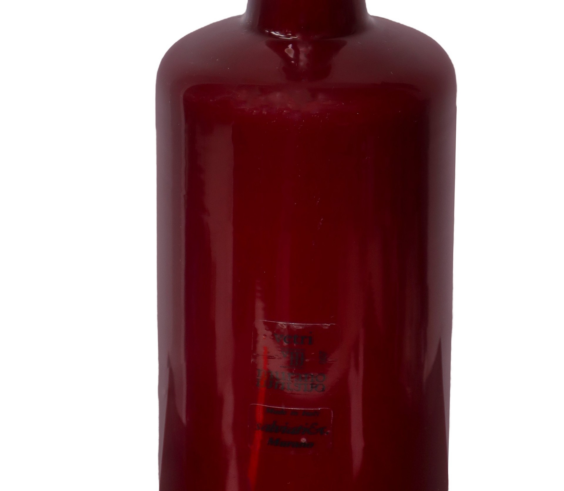 Salviati & C - Vaso Bottiglia in vetro di Murano bordeaux H cm 27 Firmato alla base.Firmato alla ba