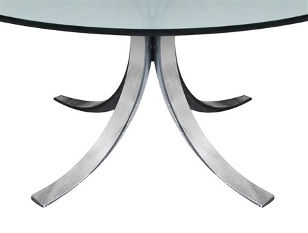 Osvaldo Borsani per Tecno - Tavolo in metallo con piano in vetro h cm 65, d 130