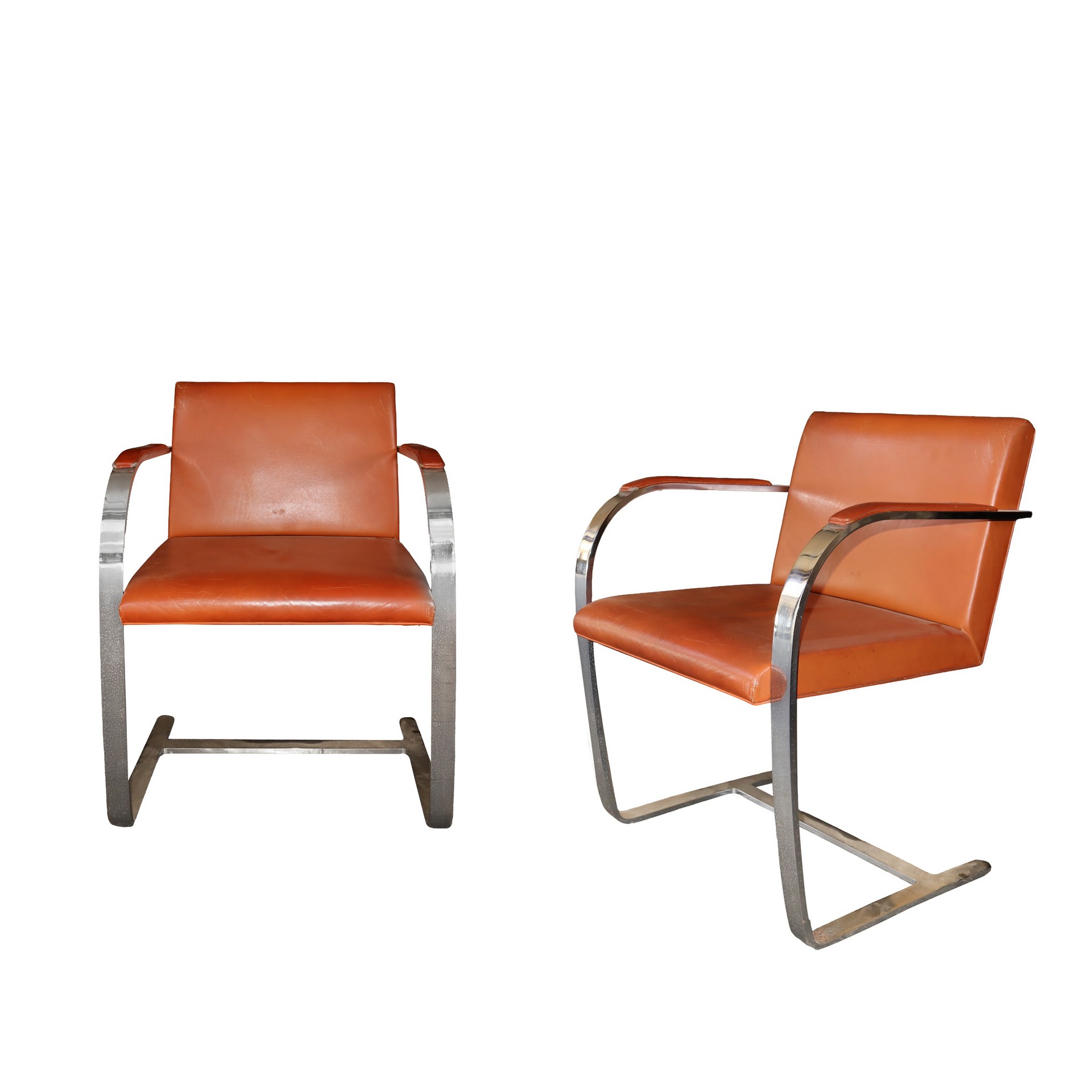 Mies van der Rohe per Knoll - Coppia poltrone mod Brno, cromate con seduta e spalliera in pelle co