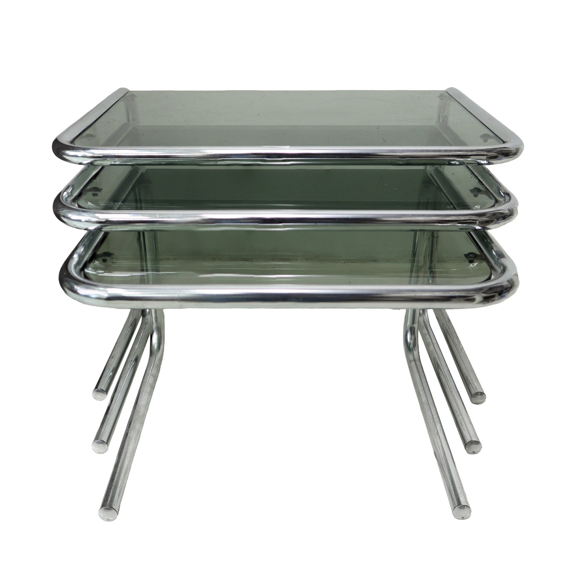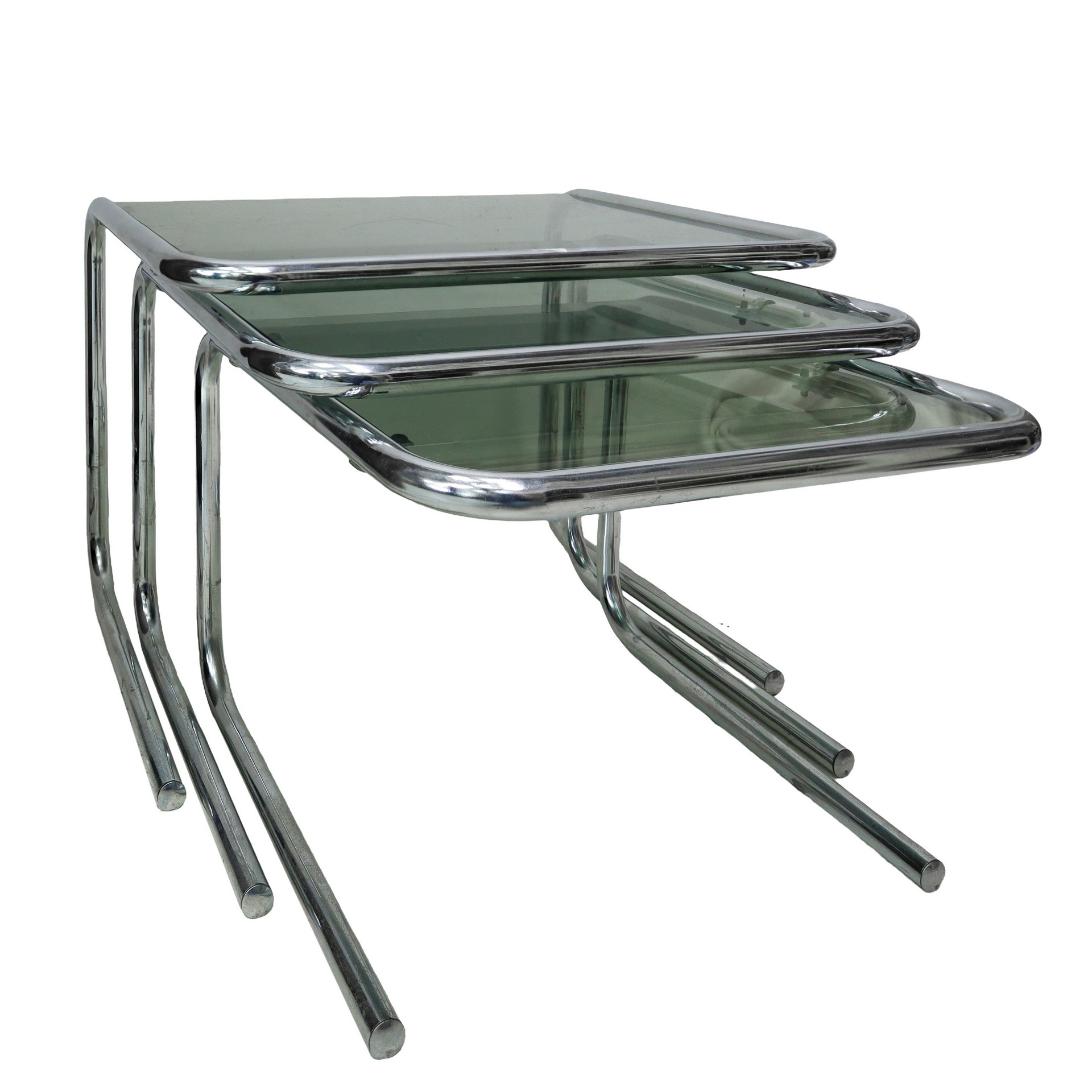 Trittico di tavolini stile Milo Baughman Grande H cm 38x52x40,5 Medio H cm 34x46x40,5, piccolo H cm