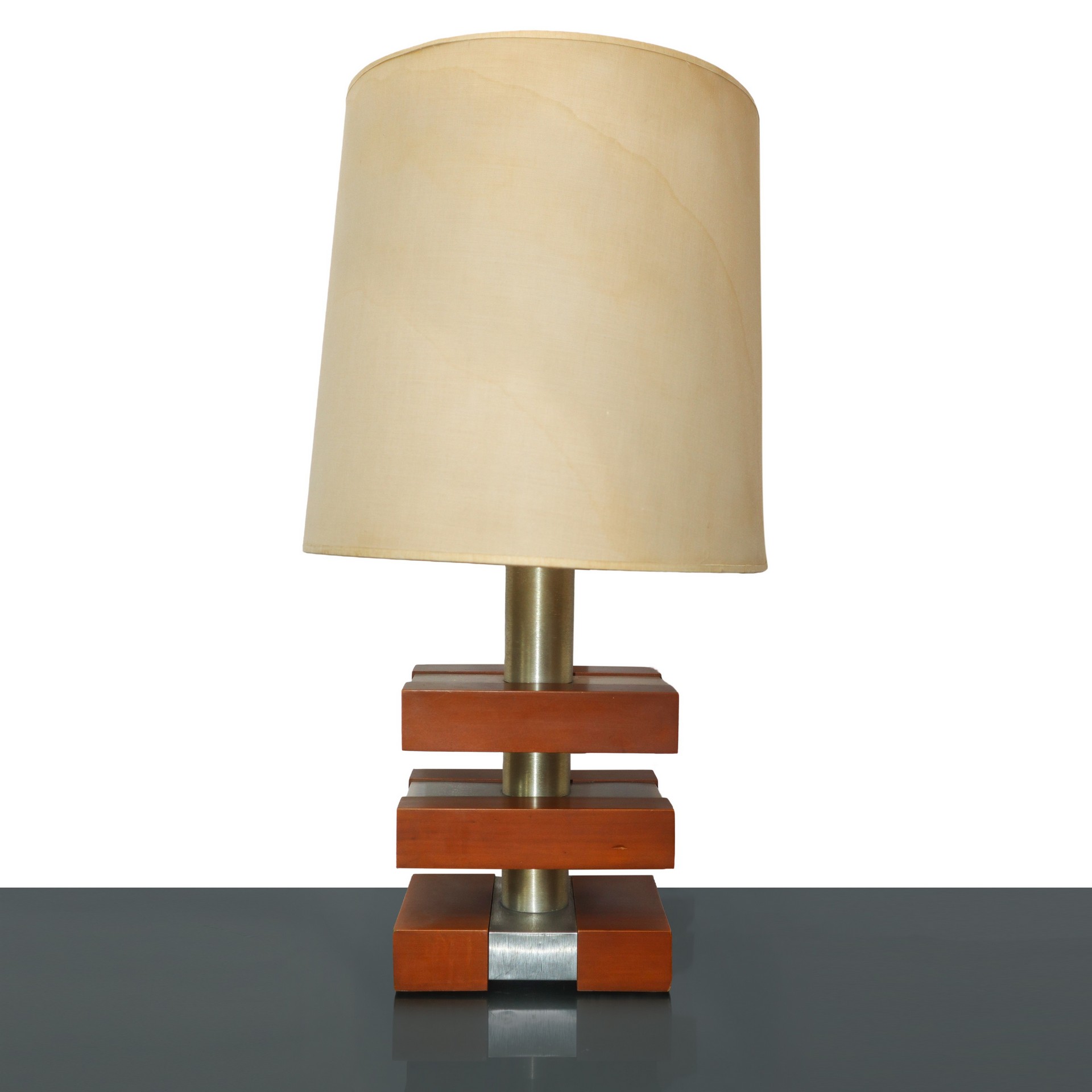 Lampada da tavolo vintage in acciaio e oak con paralume, 60's H cm 63