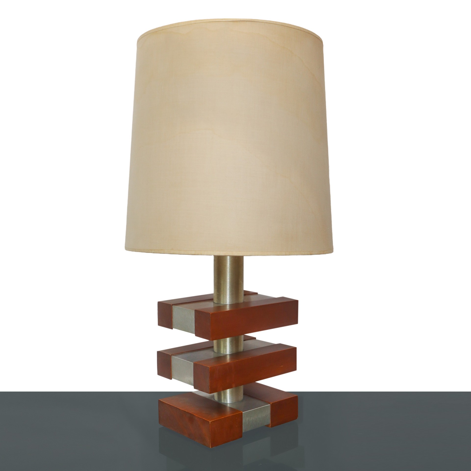 Lampada da tavolo vintage in acciaio e oak con paralume, 60's