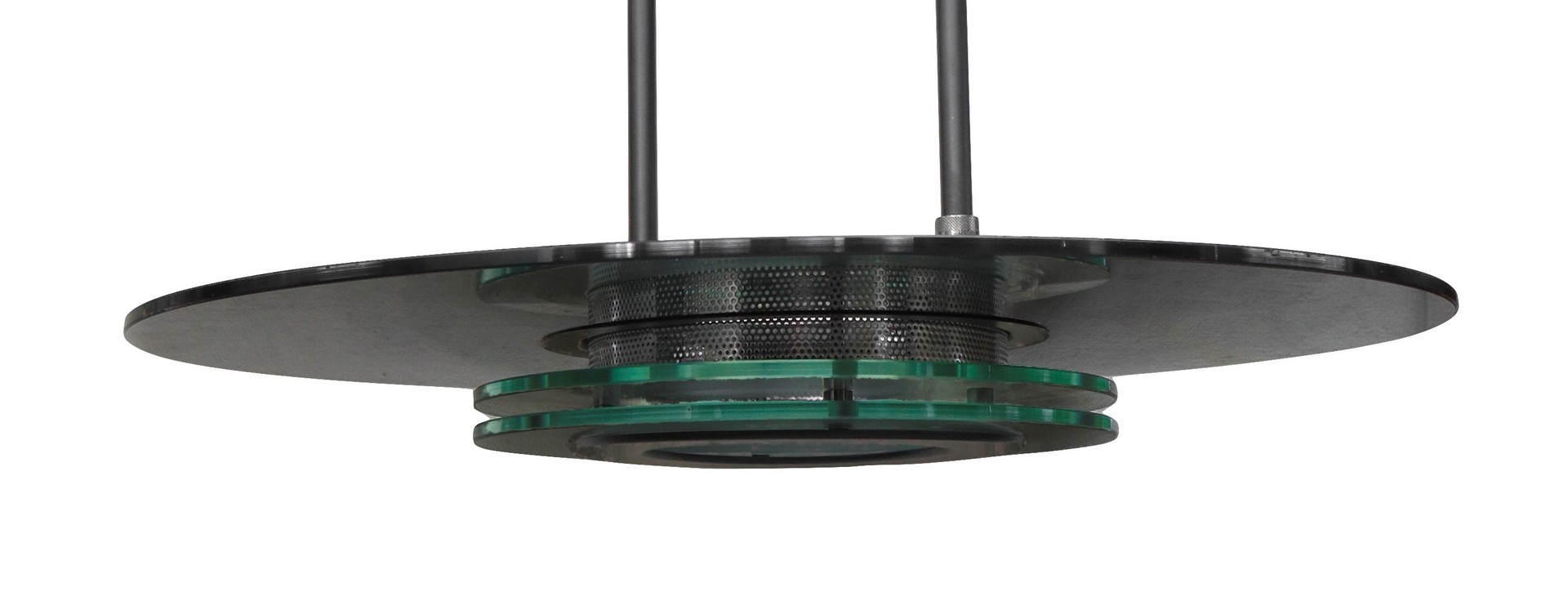 Sospensione a disco in vetro di Murano nero Diametro 65, H cm 60
