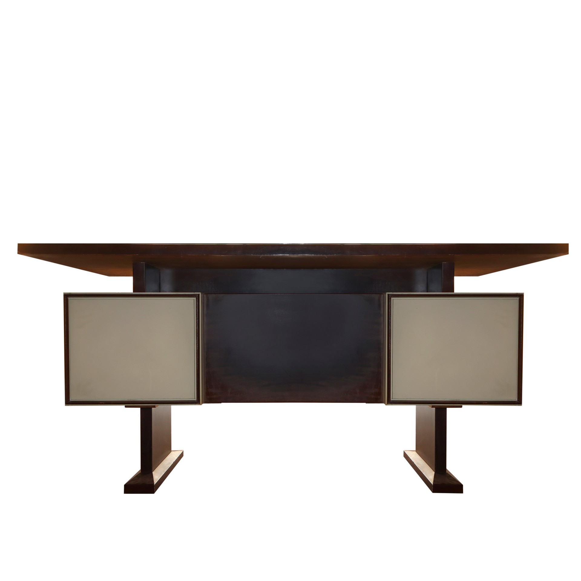 Scrivania vintage, 1970 H cm 78x160x80 Cassetti n. 3 per lato, piano jn legno con copertura in vetr