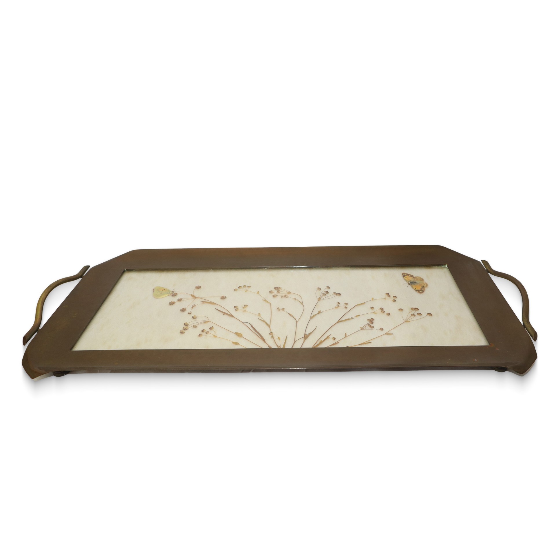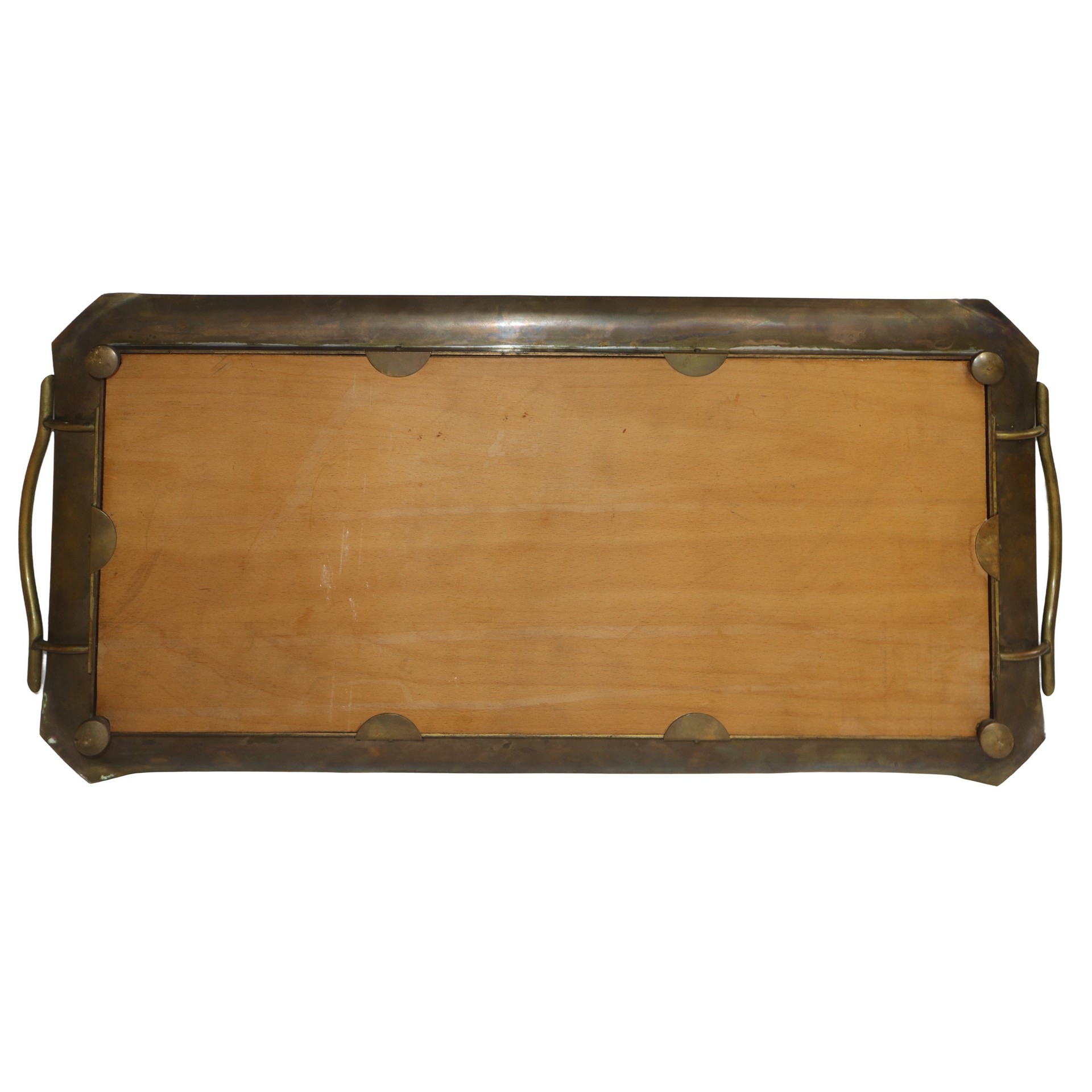 Vassoio vintage in ottone dorato con manici ai lati cm 63x28