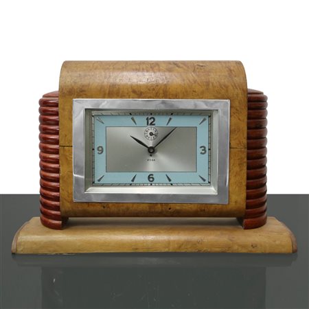 Orologio Deco' Vega in legno di acero, Thirties H cm 20- base cm 30x7