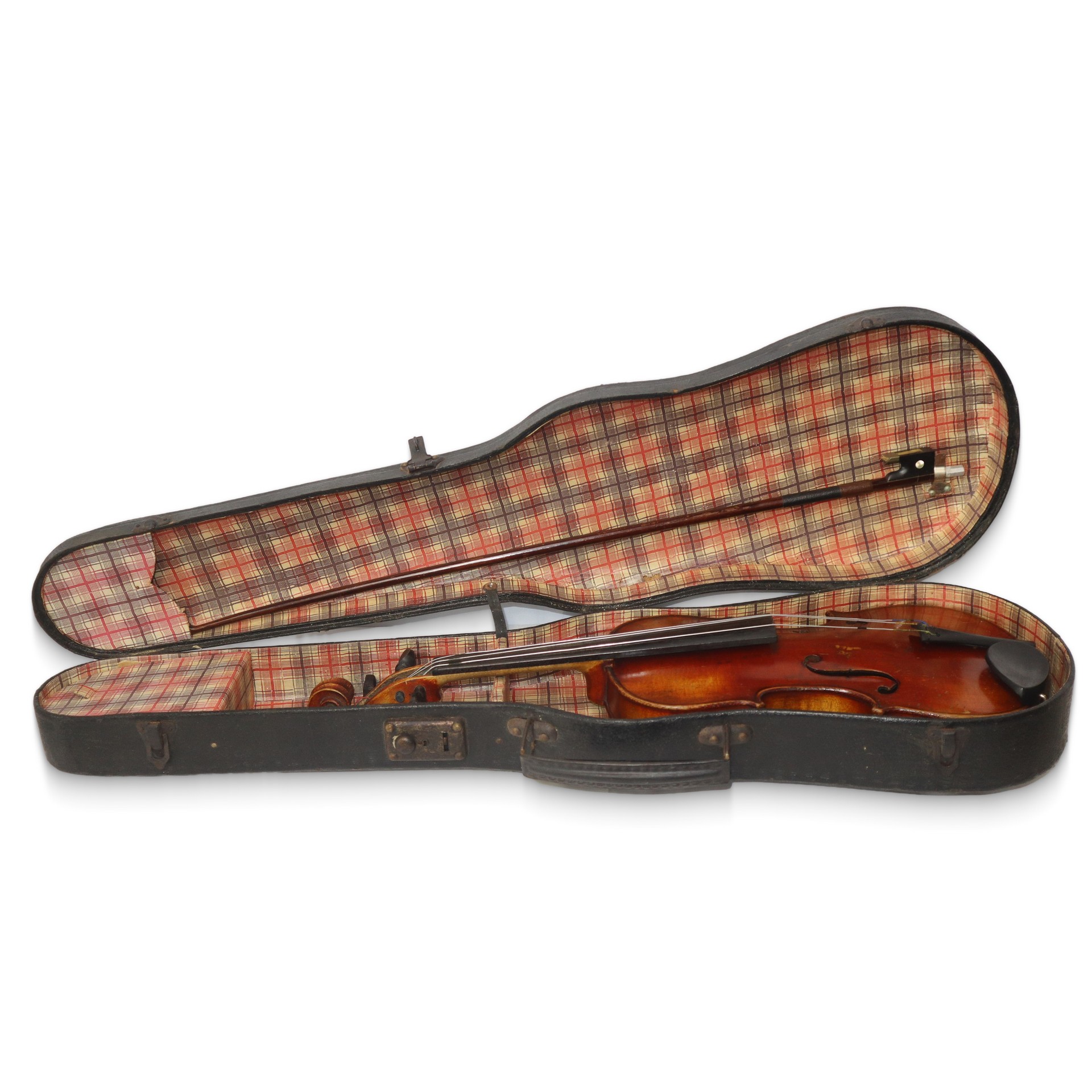 Violino di liuteria mignon per bambino con archetto e custodia, nineteen° secolo