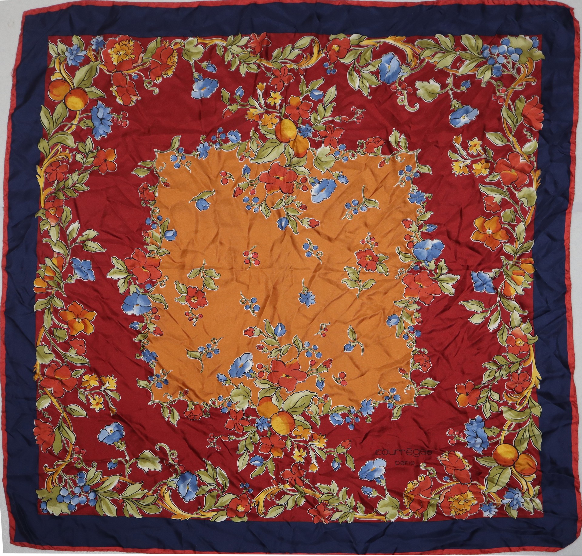 Courrèges Paris - Foulard vintage in seta con motivi floreali