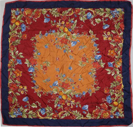 Courrèges Paris - Foulard vintage in seta con motivi floreali cm 87 x 87