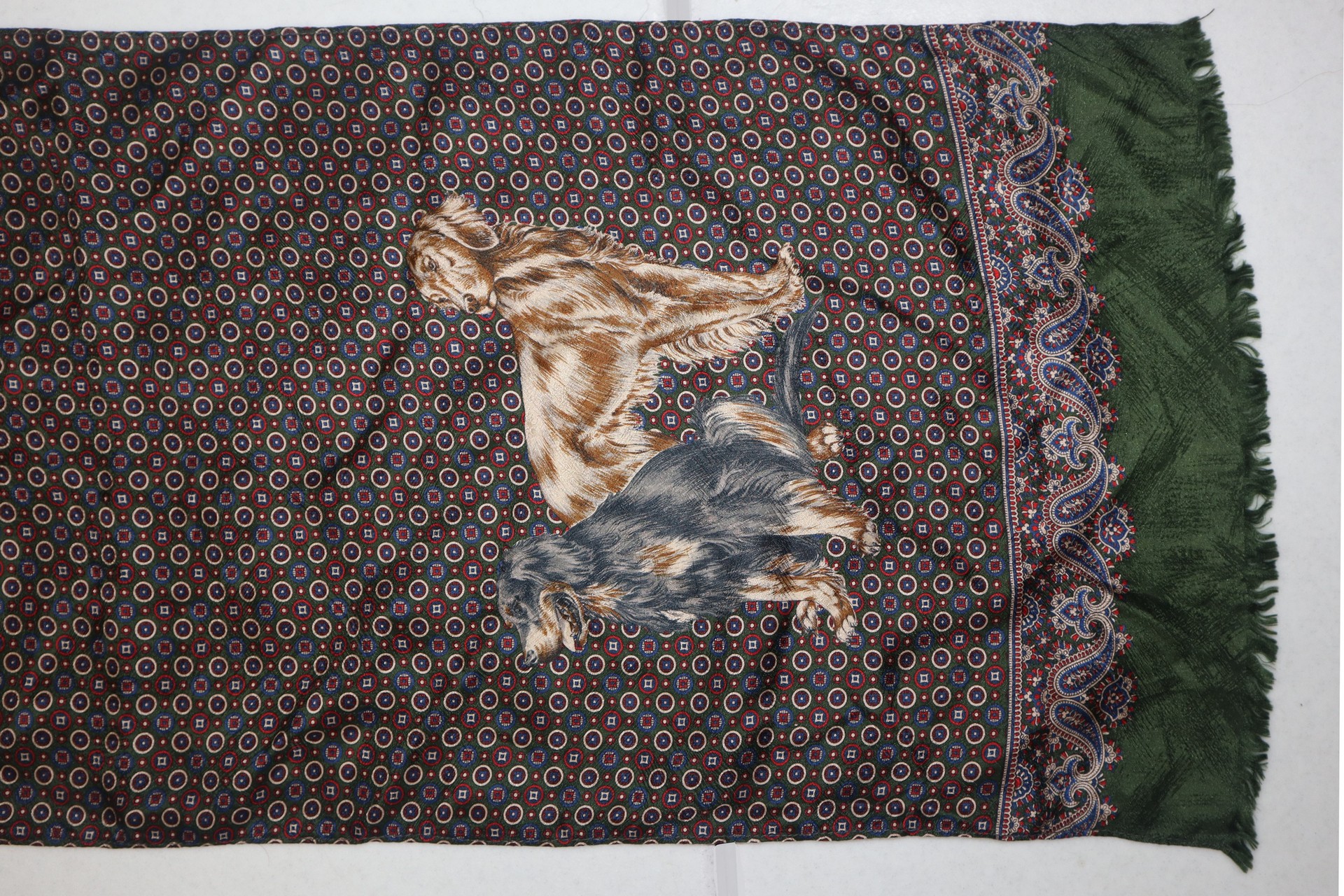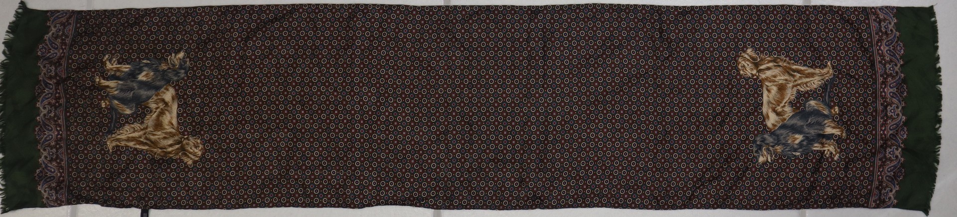 Sciarpa vintage nei toni del verde in seta raffigurante cani L 151 cm x 30