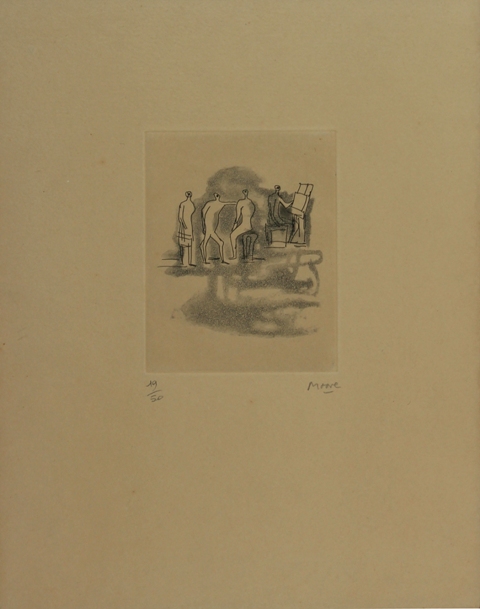 HENRY MOORE Castleford 1898 - Much-Hadam 1986 Senza titolo, 1967 Acquaforte, ex. 19/50 Misure del foglio, cm. 32,8 x 25,2 Misure della lastra, cm. 12,7 x 9,7 Firma in basso a destra