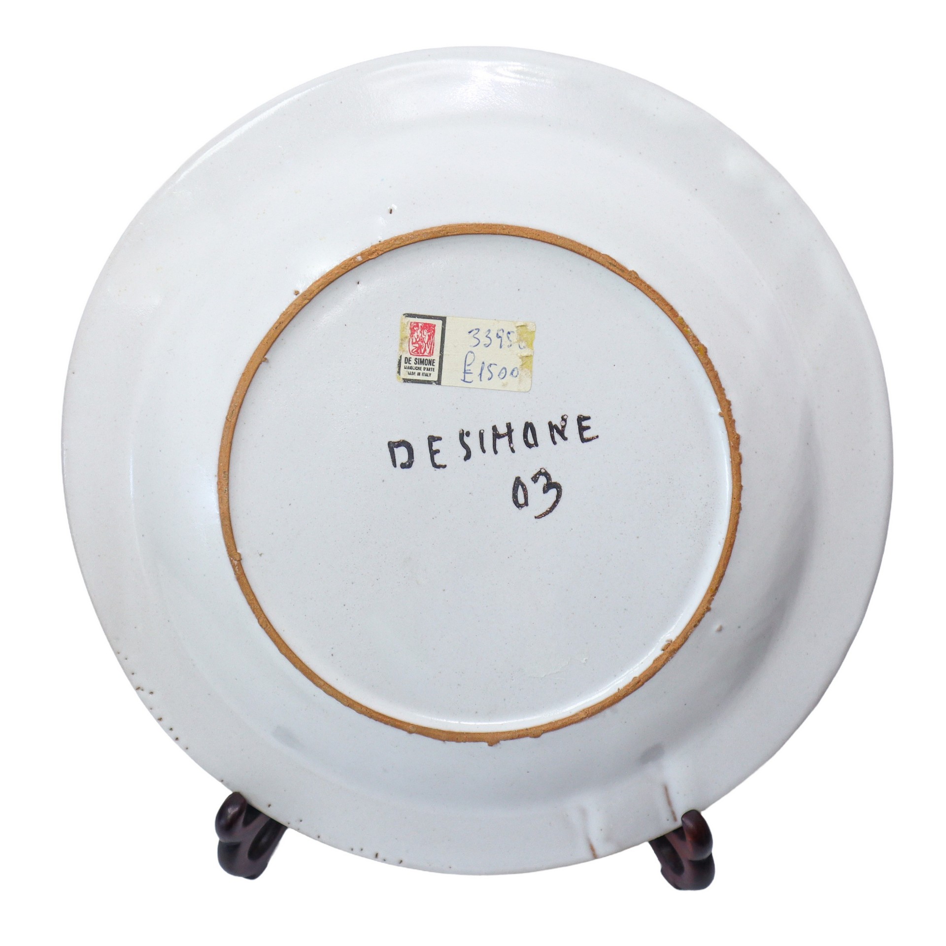 De Simone - Servizio di piatti da 12 in maiolica con decoro centrale a spirale, 1970