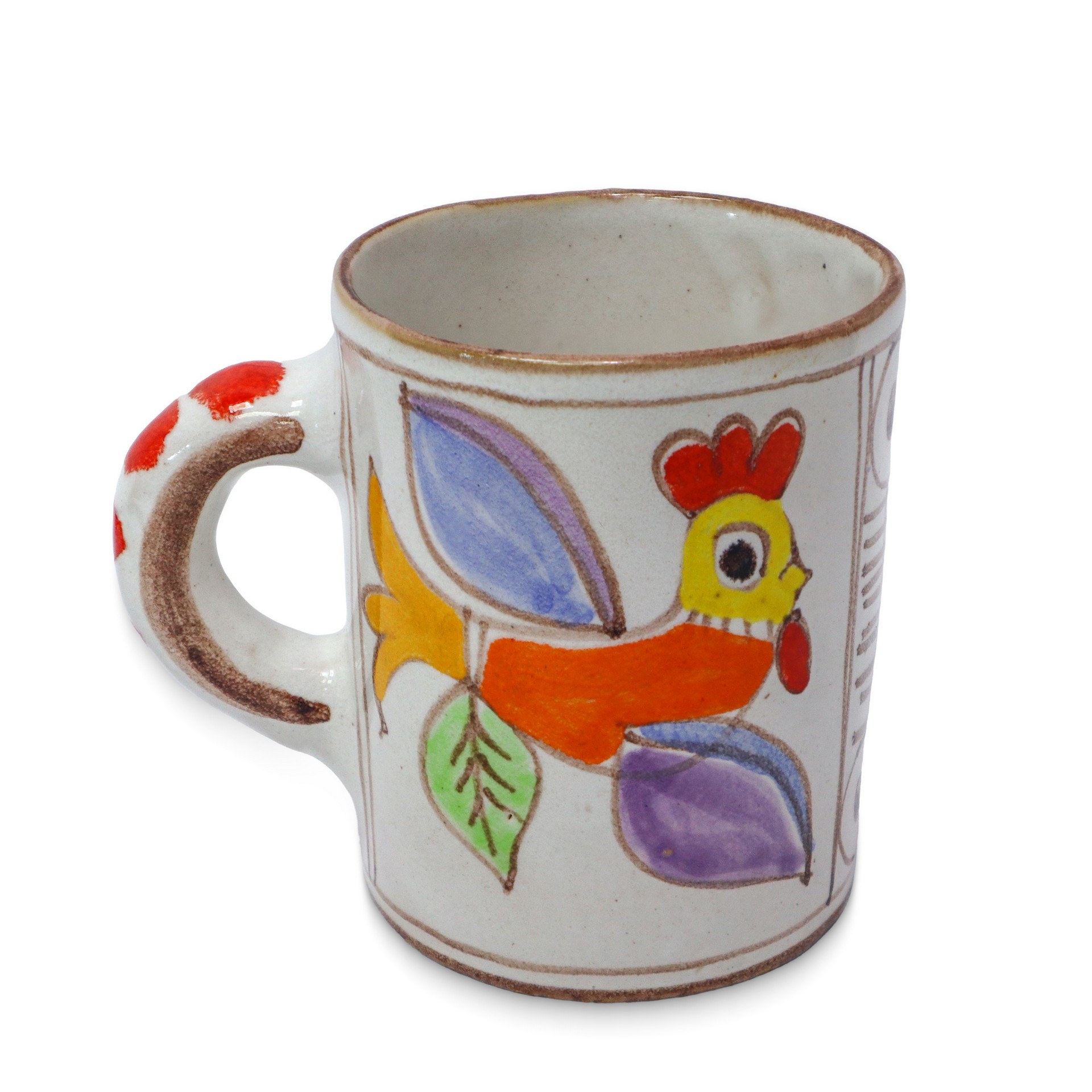 De Simone - Boccale e bicchiere in ceramica dipinta a mano con pesce e pianta rossa, 1960/1970 H cm
