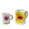 De Simone - Boccale e bicchiere in ceramica dipinta a mano con pesce e pianta rossa, 1960/1970