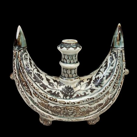 Cina fiaschetta del pellegrino in porcellana decorata con motivi vegetali