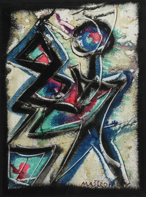 UMBERTO MASTROIANNI Fontana Liri 1910 - Roma 1998 Figura astratta Tecnica mista su carta cm. 35 x 25 Firma in basso a destra Visionato con esito positivo da Floriano De Santis, Archivio Mastroianni, aprile 2014