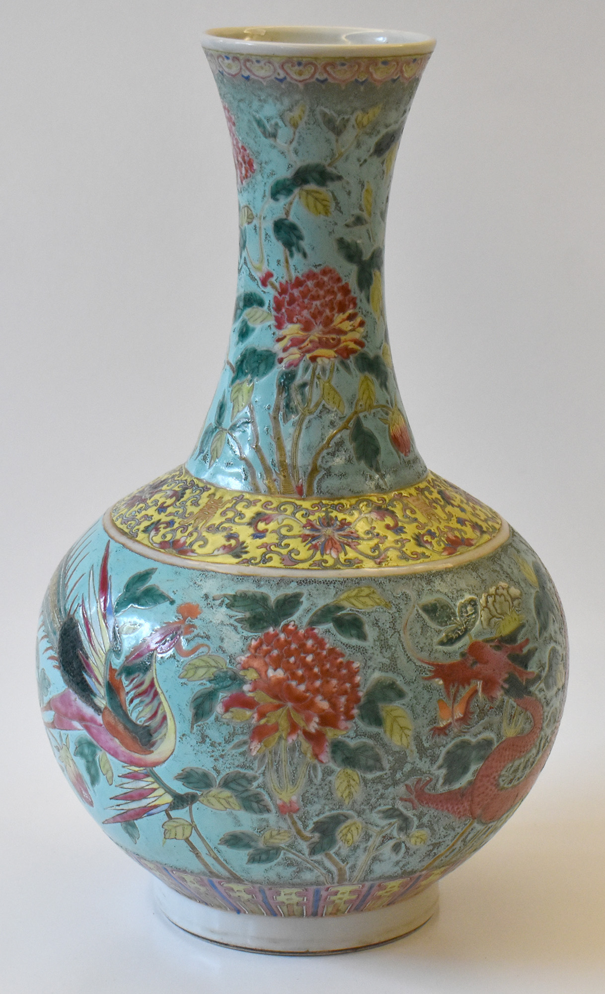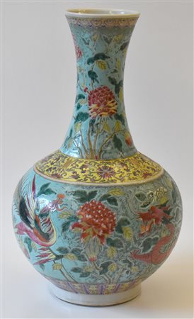 Cina vaso in porcellana fondo turchese decorato con dragone e fenice