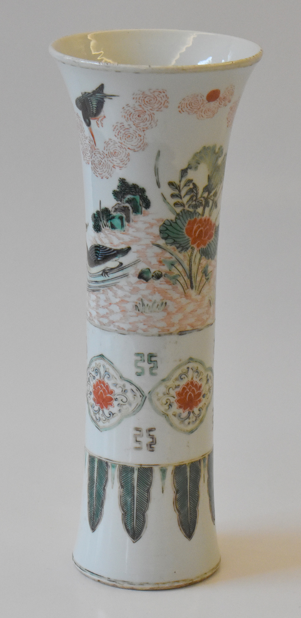 Cina vaso a tromba in porcellana dipinta decorato con motivi vegetali e uccelli