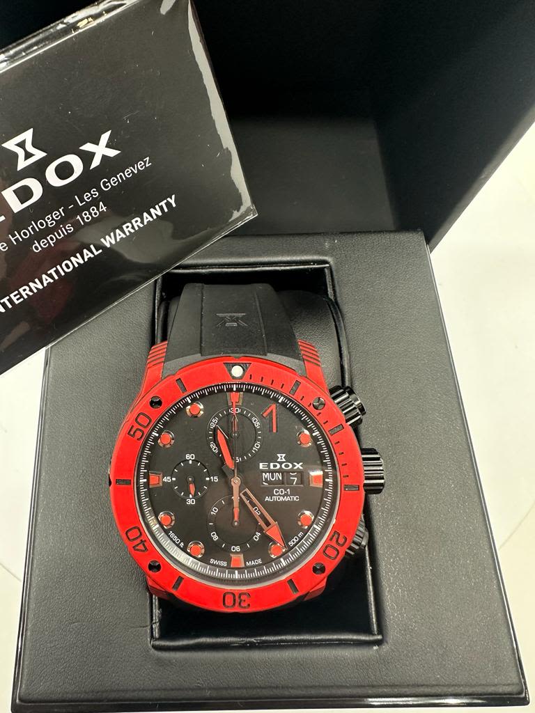 Edox chronoffshore 1 carbon Numero di referenza 01125 CLNRN NINRO Carica Automatico Materiale della cassa Carbonio Materiale cinturino Gomma Anno di produzione 2022 Corredo Con scatola originale e documenti originali Carica Automatico Materiale della cassa Carbonio Diametro 45 mm Impermeabile 50 ATM Vetro zaffiro Quadrante Nero Cinturino Materiale cinturino Gomma anno 2002