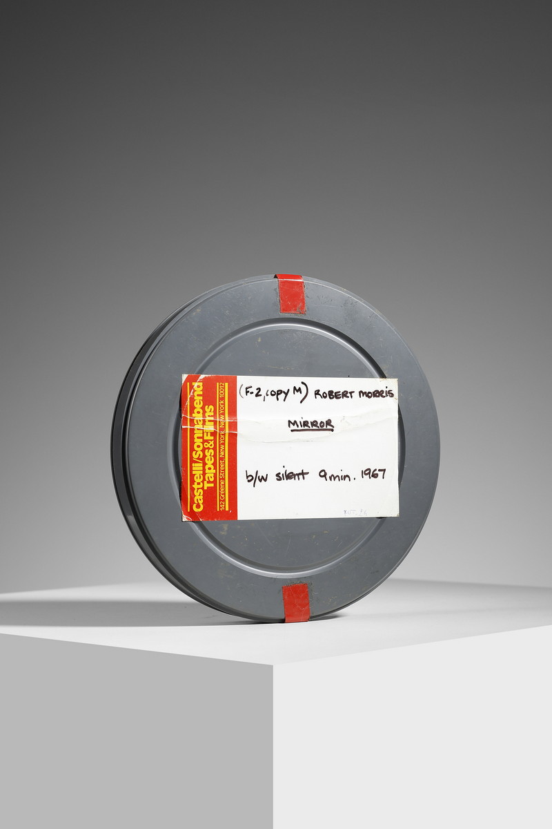 MORRIS ROBERT (n. 1931) MIRROR (F-2 COPY M), 1967. pellicola cinematografica 16 mm entro contenitore di alluminio. Cm 18,50 x 18,50. sulla custodia: etichetta Castelli/ Sonnabend, Tapes & films, New York