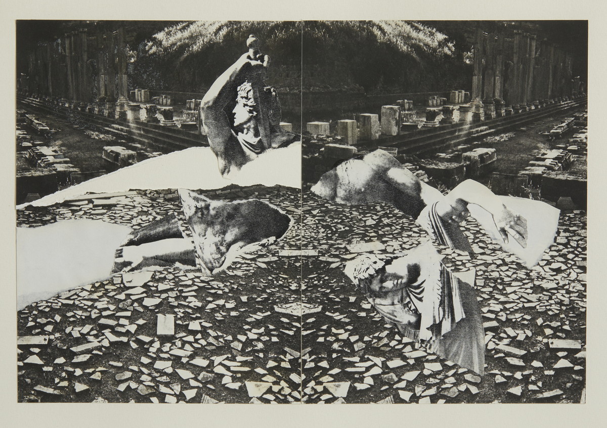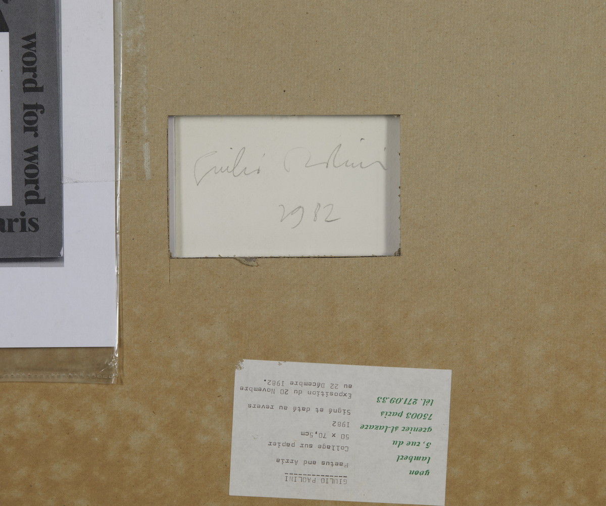 PAOLINI GIULIO (n. 1940) SENZA TITOLO (PAETUS AND ARREA), 1982. collage su carta. Cm 70,50 x 49,50. sul retro: firma e data; etichetta Yvon Lambert, Parigi