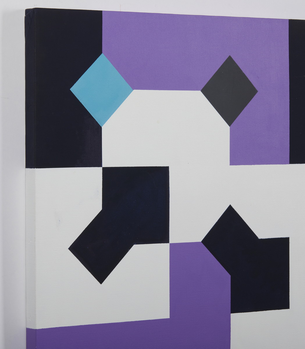 MUNARI BRUNO (1907 - 1998) COLORI NELLA CURVA DI PEANO, 1985. acrilico su tela. Cm 100,00 x 100,50. sul retro: firma, data, titolo e dedica ad personam; timbro Galleria Sincron, Brescia