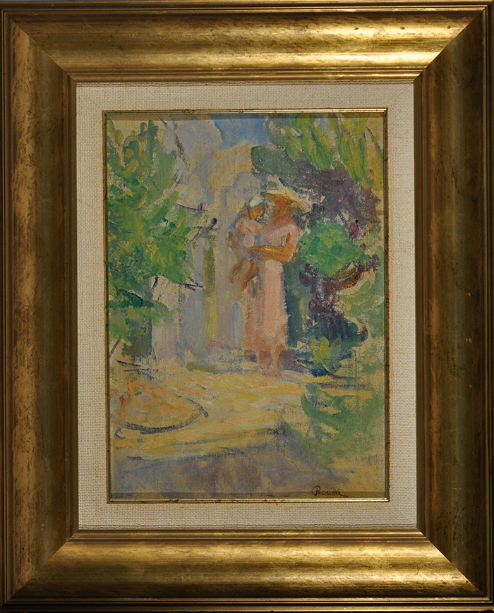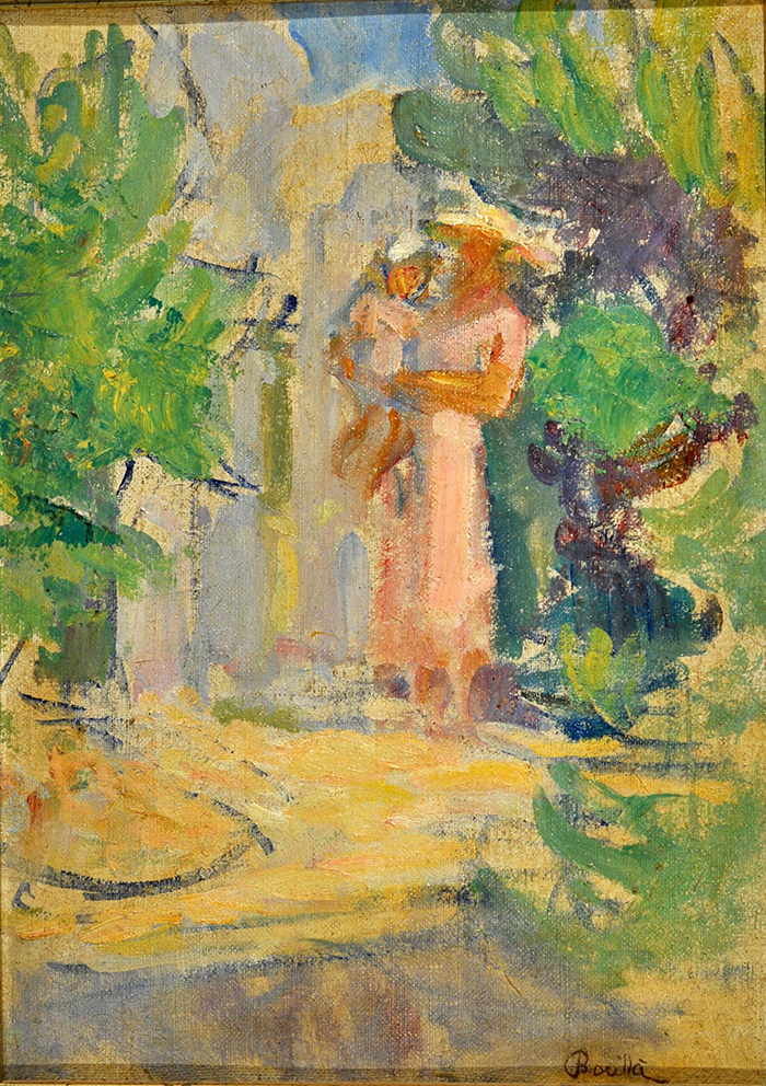 Barillà Pietro ( Radicena, RC 1887 - 1953) Figura olio su tela rip su cartone cm 33x24 firmato in basso destra: Barillà