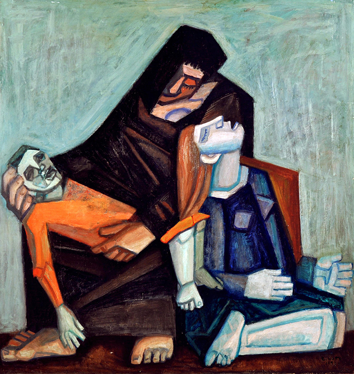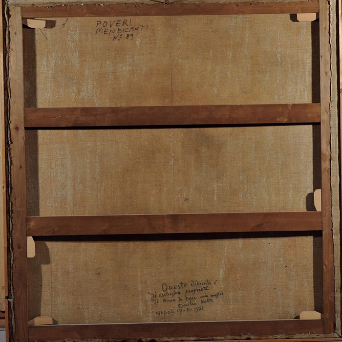 Notte Emilio (Ceglie Messapica, BR 1891 - Napoli 1982) Poveri mendicanti olio su tela, cm 143x138 firmato e datato in basso a destra: E. Notte 1953