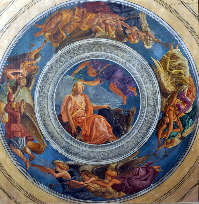 Notte Emilio (Ceglie Messapica, BR 1891 - Napoli 1982) Studio per affresco tempera su tavola, cm 90x90 firmato iscritto e datato in alto a destra: E. Notte Roma 1928 Rapp. 1/10