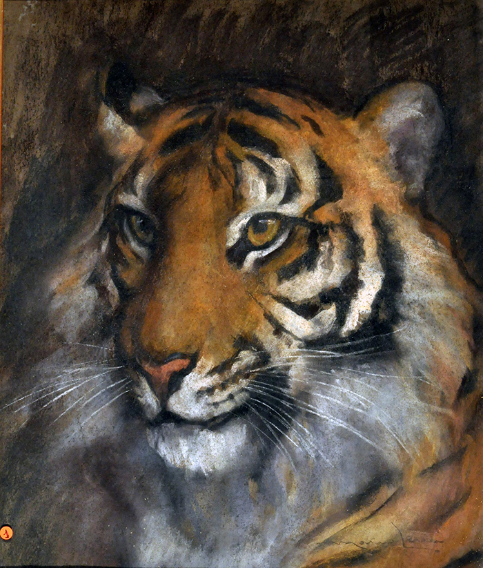 Lenci Marino (Napoli 1874 - 1939) Tigre tecnica mista su carta, cm 46x39 firmato in basso a destra: Marino Lenci