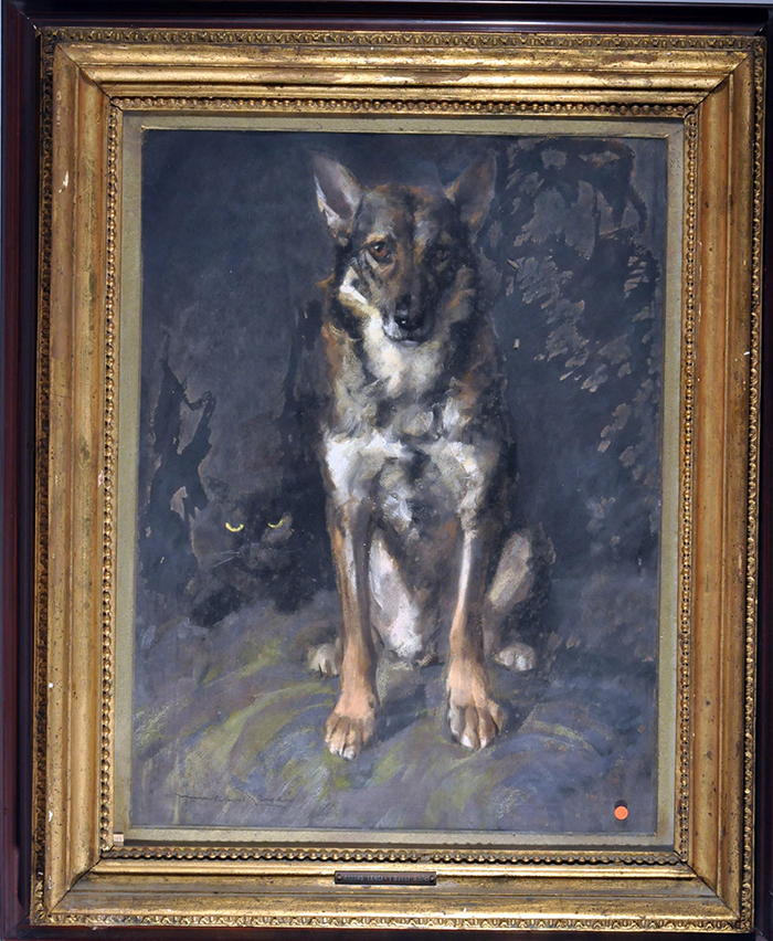 Lenci Marino (Napoli 1874 - 1939) Buoni amici tecnica mista su carta, cm 61x47 firmato in basso a sinistra: Marino Lenci a tergo cartiglio Esposizione Nazionale d'arte Circolo artistico Politecnico Napoli 1961