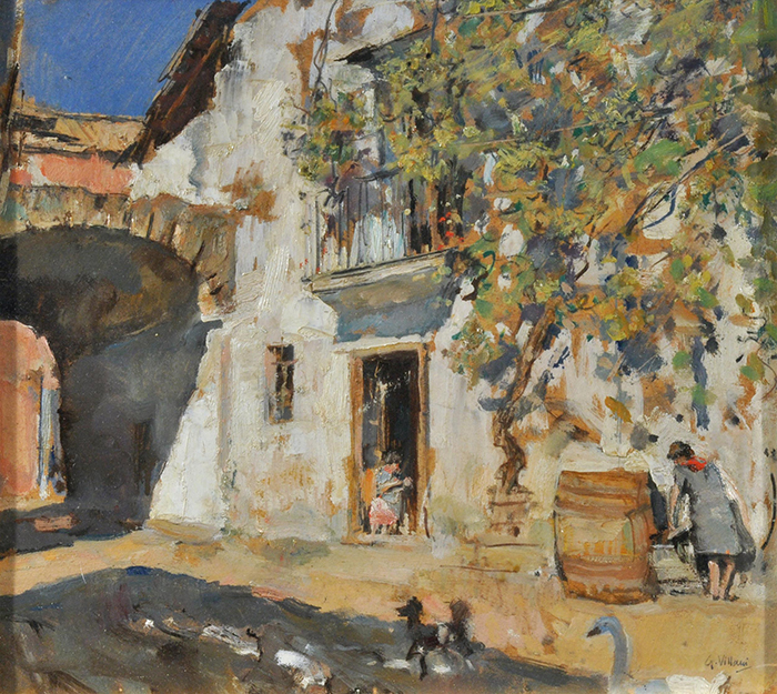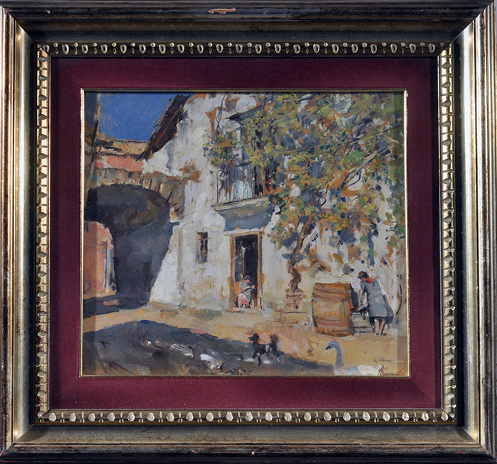 Villani Gennaro (Napoli 1885 - 1948) Casolare olio su cartone, cm 33x37 firmato in basso a destra. G. Villani