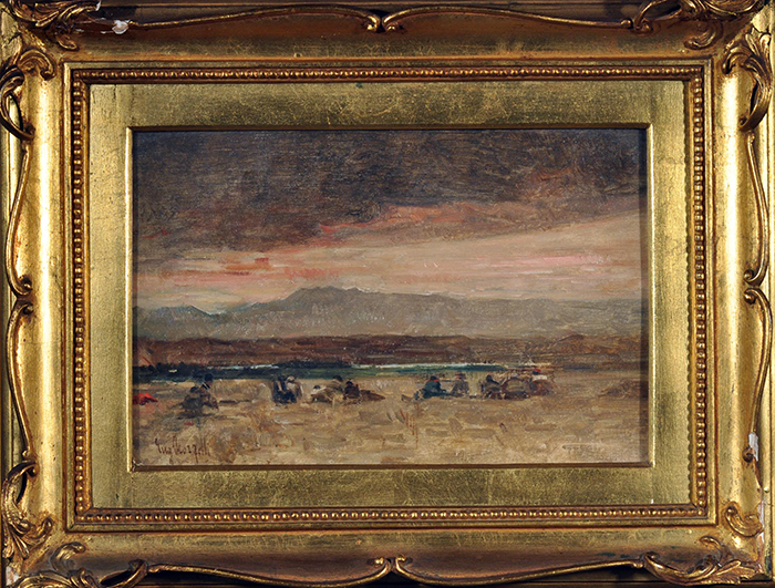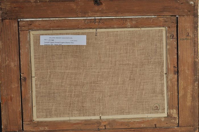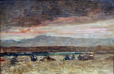 Scorzelli Eugenio (Buenos Aires - Argentina 1890 - Napoli 1958) Al tramonto olio su cartone rip. su tela, cm 20x30 firmato in basso a sinistra: Eug. Scorzelli