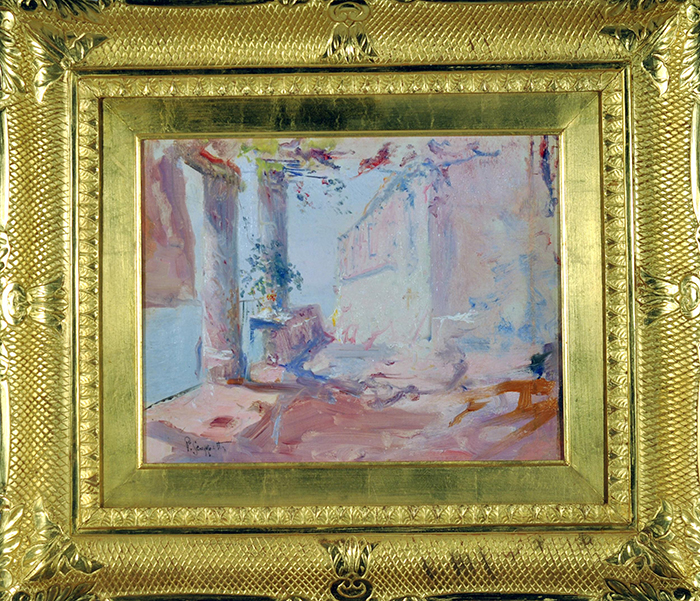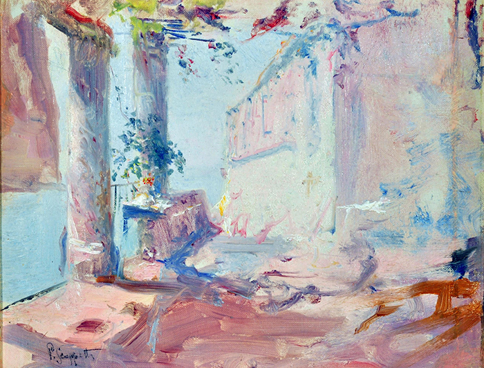 Scoppetta Pietro (Amalfi, SA 1863 - Napoli 1920) Paesaggio olio su tela, cm 25x31,5 firmato in basso a sinistra: P. Scoppetta