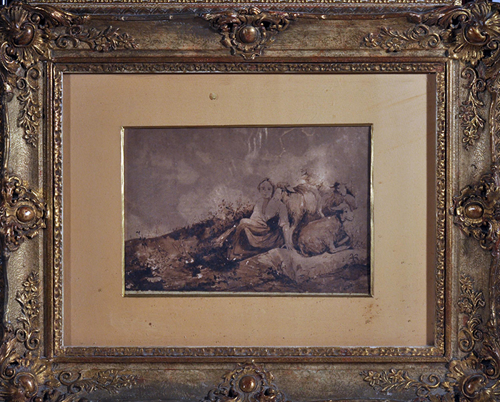 Palizzi Filippo (Vasto, CH 1818 - Napoli 1899) Pastorella tecnica mista su cartoncino cm 18,5x26,5 firmato in basso a destra: Filip. Palizzi