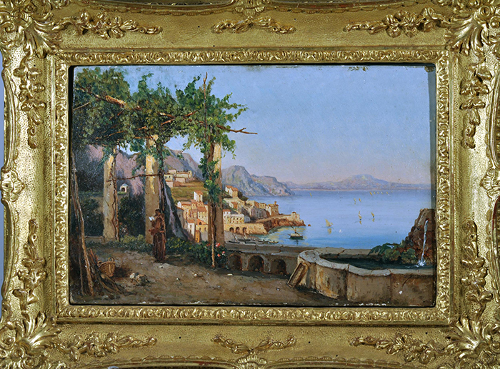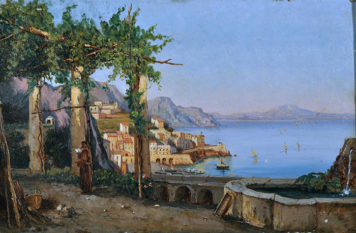 Gigante Ercole (Napoli 1815 - 1860) Cappuccini ad Amalfi olio su tela,cm 27,x41,5 firmato in basso a destra: E. Gigante
