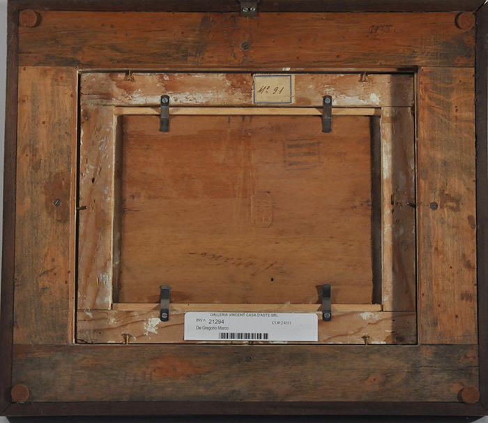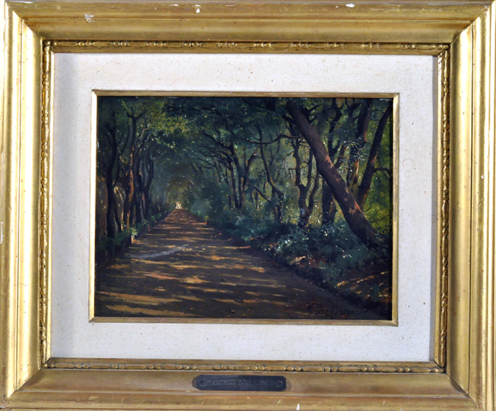 De Gregorio Marco (Resina, NA 1829 - 1876) Viale alberato olio su tavola cm 14,5x19,2 firmato in basso a destra: M. De Gregorio a tergo timbro Coll. Casciaro, Napoli