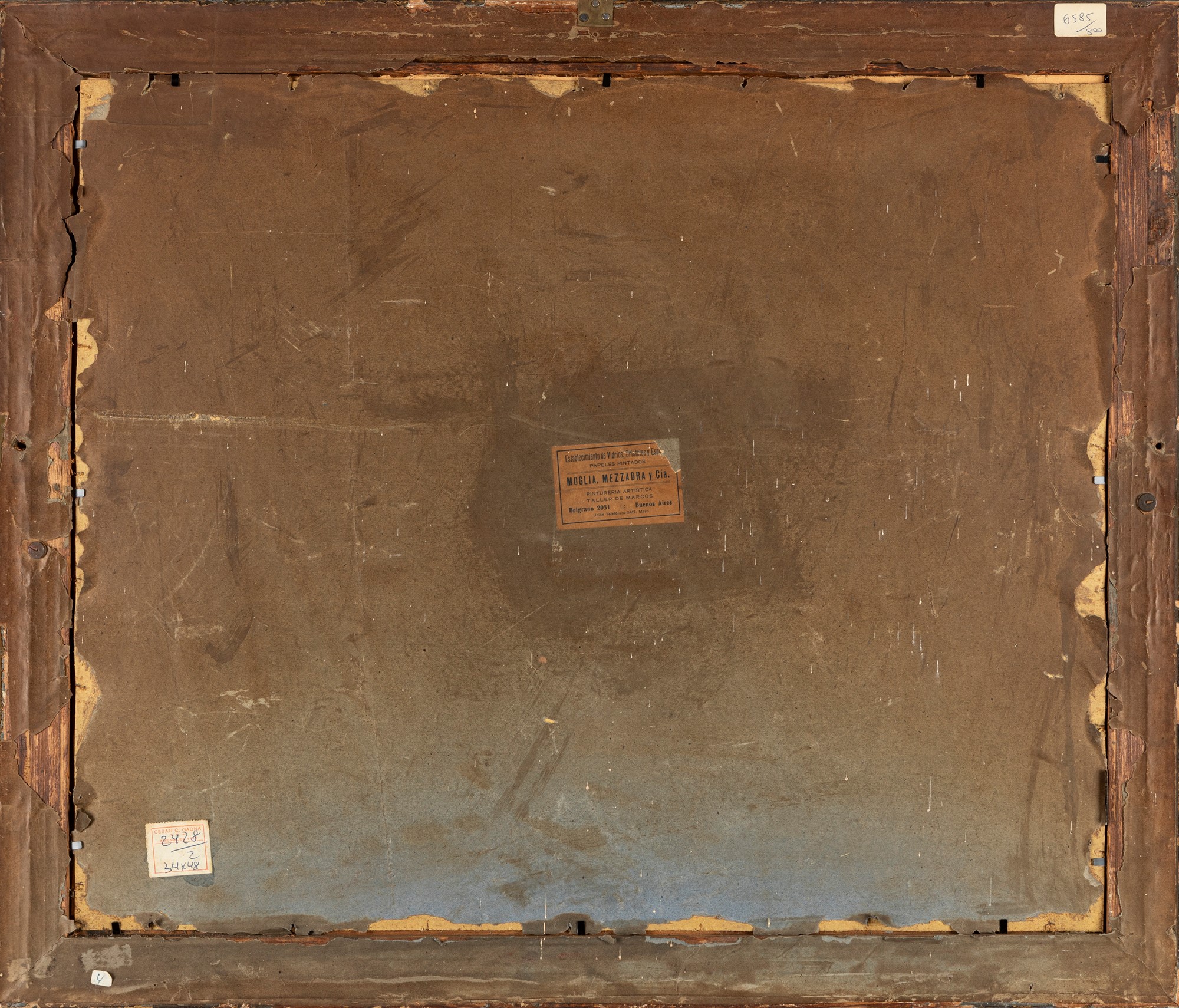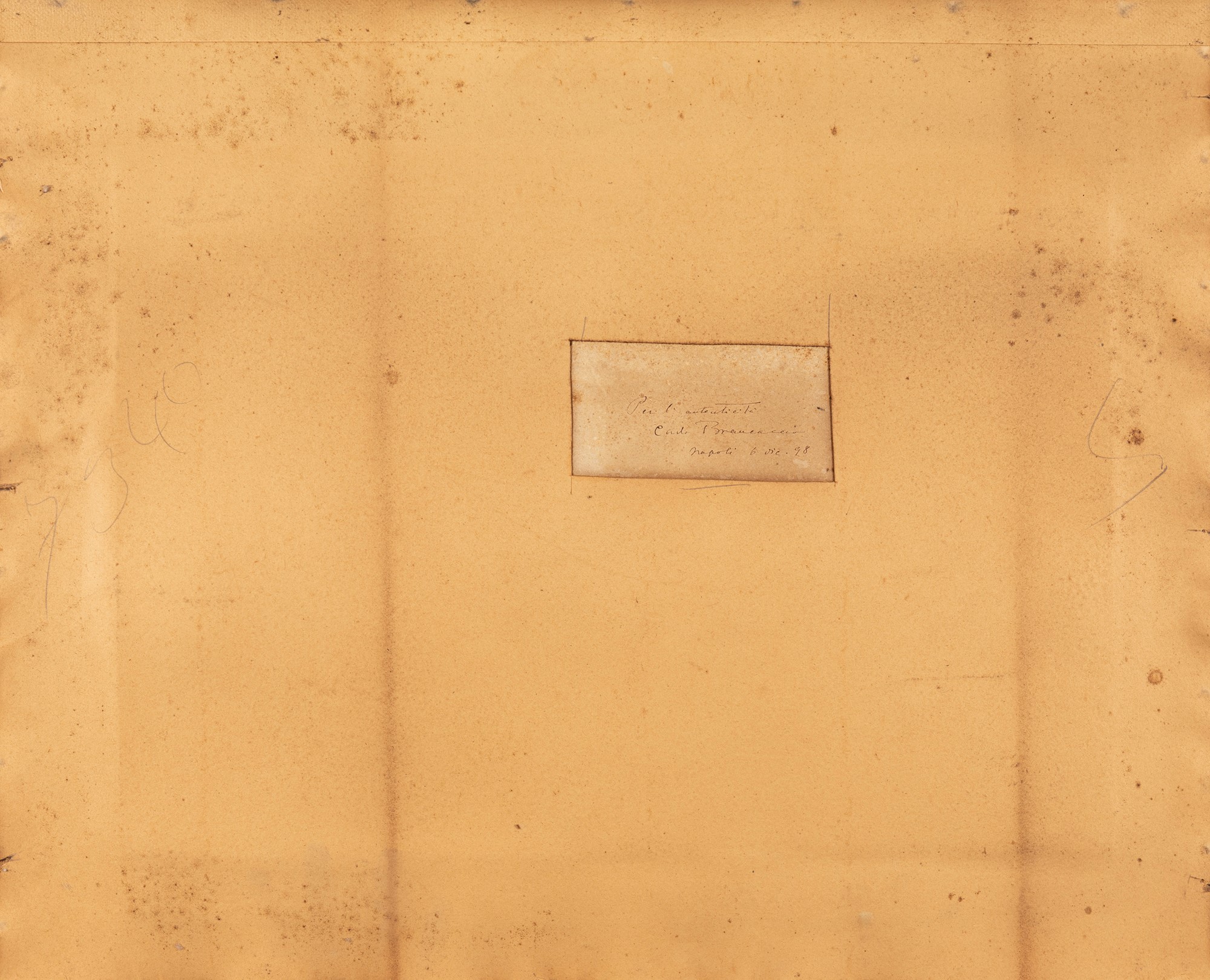 al retro, sulla carta, autentica del pittore; sul cartoncino di chiusura, etichetta relativa alla provenienza