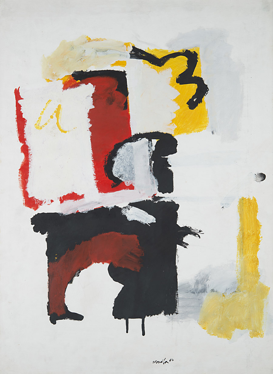 Antonio Scordia , Santa Fe 1918 , Roma 1988 "Senza titolo" 1964 tempera e tecnica mista su carta, cm 76x55,5 Firmato e datato 64 in basso al centro