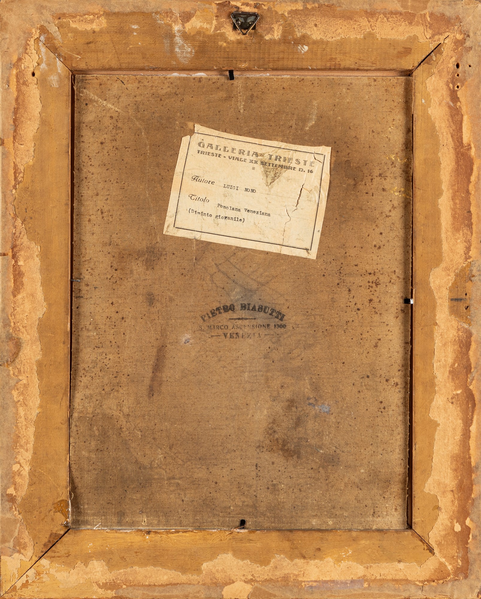 al retro, sulla tela, etichetta della Galleria Trieste e timbro di Pietro Biasutti, Venezia