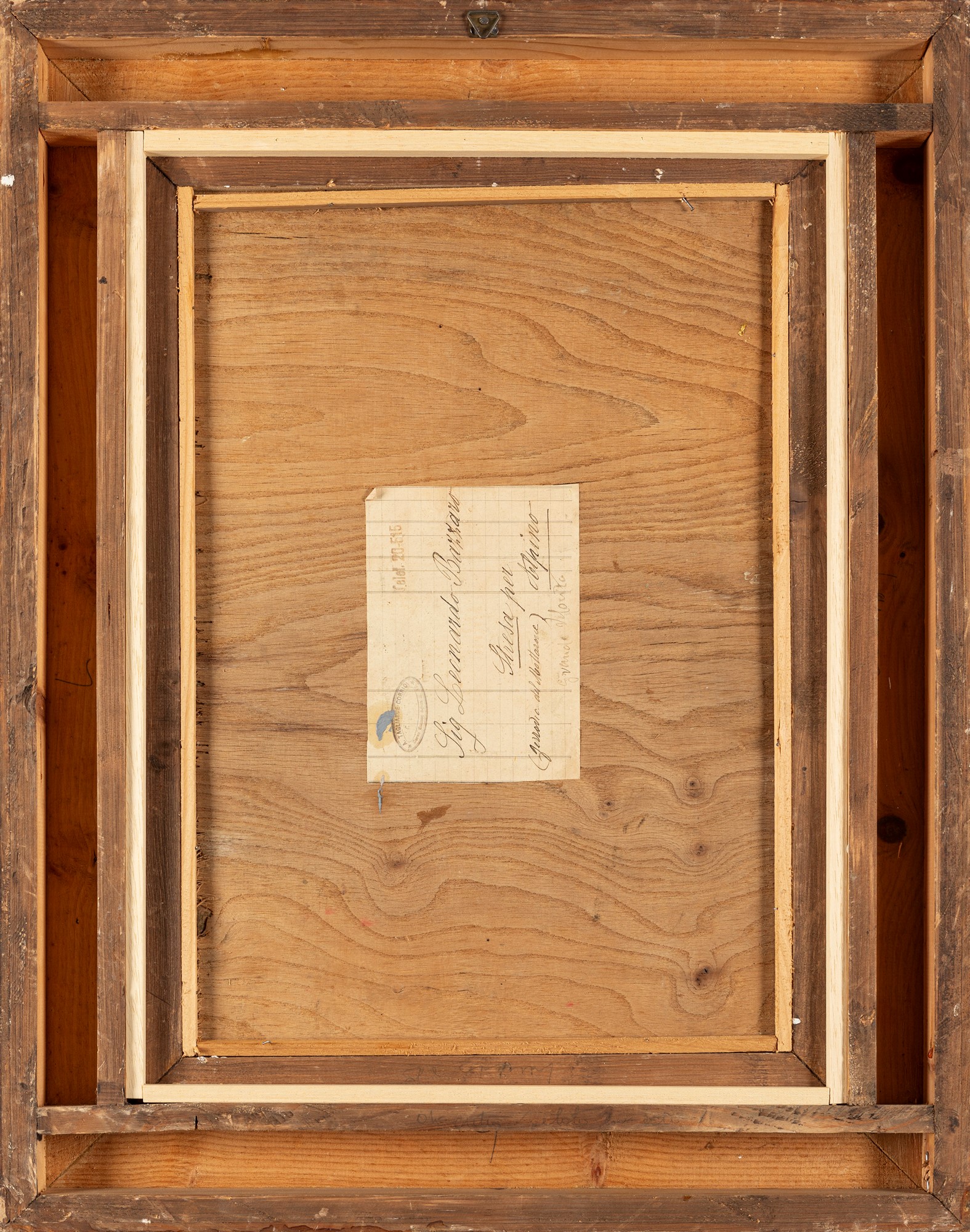 al retro, sul compensato, etichetta del pittore: Sig Leonardo Bazzaro / Stresa per / alpino / (ferrovia del Mottarone)